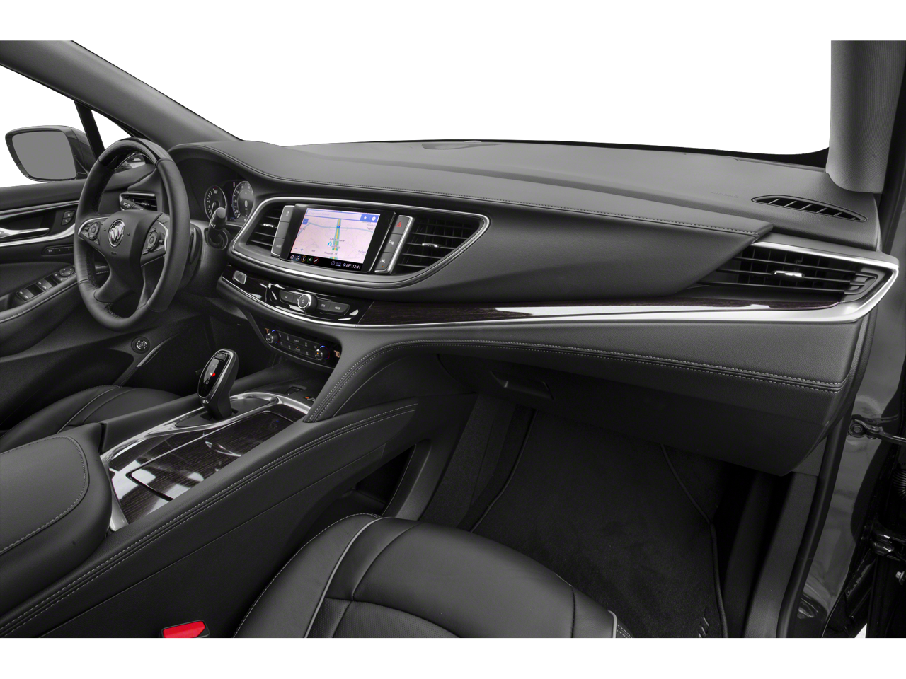 - Avenir Package Premium Package content plus: unique upper and lower grilles, wheels and front door badging; unique Chestnut/Ebony or Ebony interior color including seat stitching and piping; Avenir embroidered headrests and floor mats; bold script sill plates on all four doors; premium film decor accents; wood steering wheel; Buick Infotainment with Navigation; Wireless Charging; power dual moonroof with fixed rear skylight; 8" reconfigurable Driver Information Center; HD Surround Vision with full display Rear Camera Mirror and 6 exterior colors