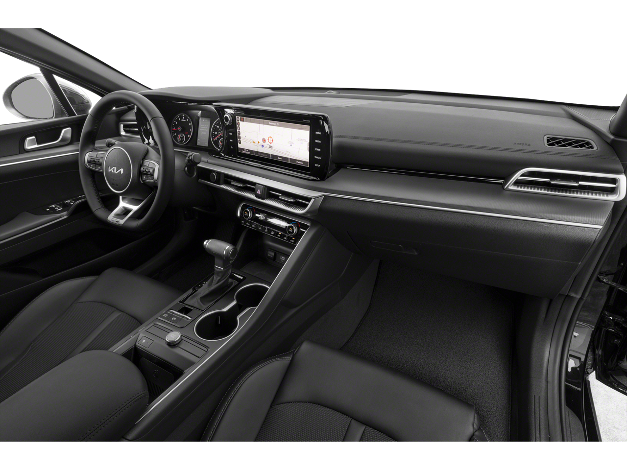 The bold, athletic styling of the K5 GT-Line commands attention on the road. The sleek, sculpted exterior is accented by 18-inch gloss black machined finish alloy wheels, giving this sedan an undeniably sporty presence. Step inside and you'll be greeted by a well-appointed cabin featuring heated front seats, a premium audio system, and a suite of advanced safety technologies.