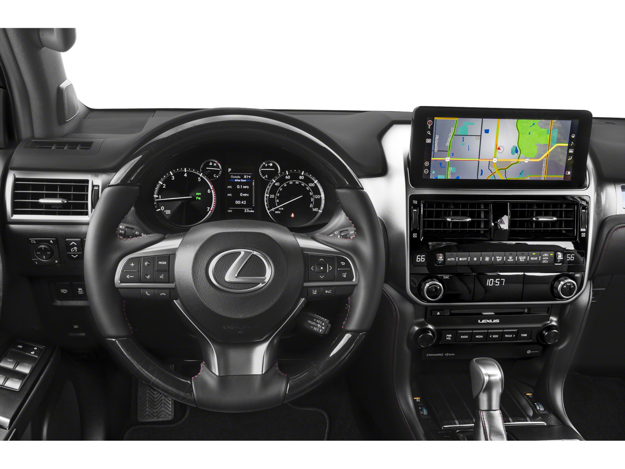 Riding on striking 18 inch dark gray metallic alloy wheels, this GX projects authority from every angle. Headlamp washers, LED foglamps, and classic body on frame construction reflect a design rooted in durability and long term reliability. Inside, the Premium Plus Package with captains chairs transforms the cabin into a first class environment. Heated and ventilated front seats, heated second row tilt and slide captains chairs, and three zone automatic climate control ensure comfort for every passenger in every season. Gray Sapele wood trim and a heated wood and leather steering wheel add warmth and craftsmanship to the interior.